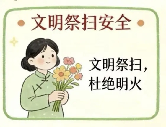 清明是缅怀先烈、祭奠先祖的传统节日,倡导大家文明祭扫、绿色祭扫,摒弃焚烧纸钱、燃放鞭炮等传统祭扫方式中的陋习,选择鲜花祭扫、线上缅怀、家庭追思等环保方式,寄托哀思。