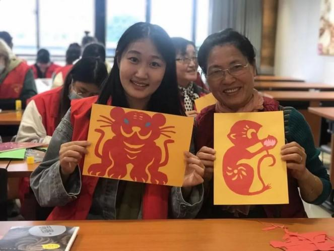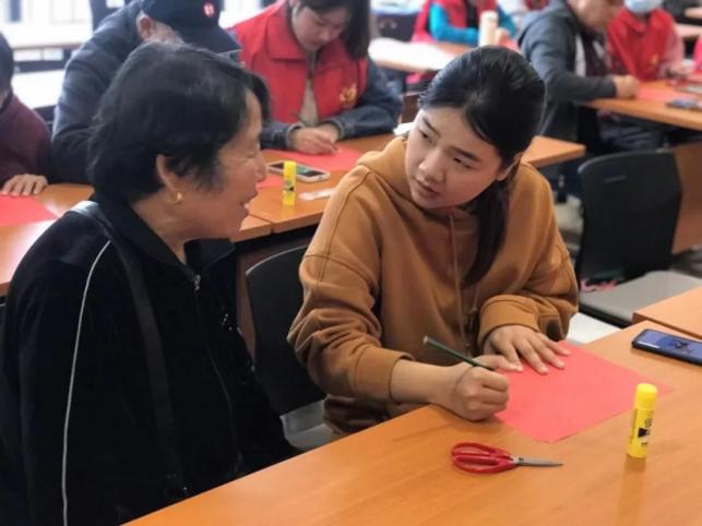 每学期2次组织大学生志愿者团队来到翰墨香林社区,开展敬老爱老公益志愿服务。通过辅导老年朋友剪纸、书法、绘画等,在丰富其业余生活的同时,进一步推进非物质文化遗产的保护和传承,让各类艺术融入现代生活,让留下街道翰墨香林社区的老年朋友们感受到温暖和喜悦。