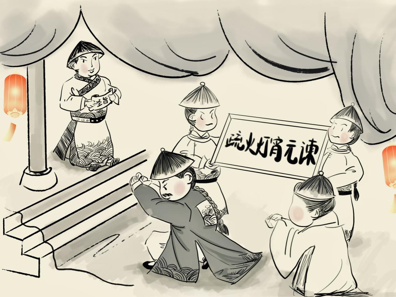创作说明:画面描述的是章懋等人在元宵佳节时向明宪宗上疏进谏并惹怒宪宗的场景,这个画面具有代表性,体现出章懋清廉、正直的美好品德,是后世的楷模。