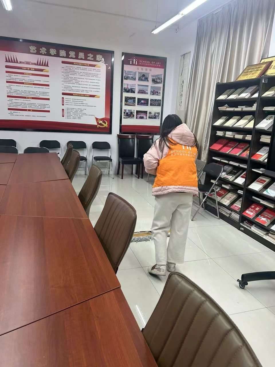 多次开展“艺起行·志愿有我”盲盒志愿服务活动。志愿者们通过抽取盲盒的形式,来到党员之家、画室、教室等公共区域进行清扫,经过志愿者们的辛勤劳动,教室的卫生得到了明显改善。志愿者们还通过整理摆放电瓶车,帮助同学搬书、撑伞等日常小事,使我们的校园更加友善和谐。生活里的每一件温暖小事,汇聚起来,便铸就了清朗的教学环境,营造了无私的教学风尚。