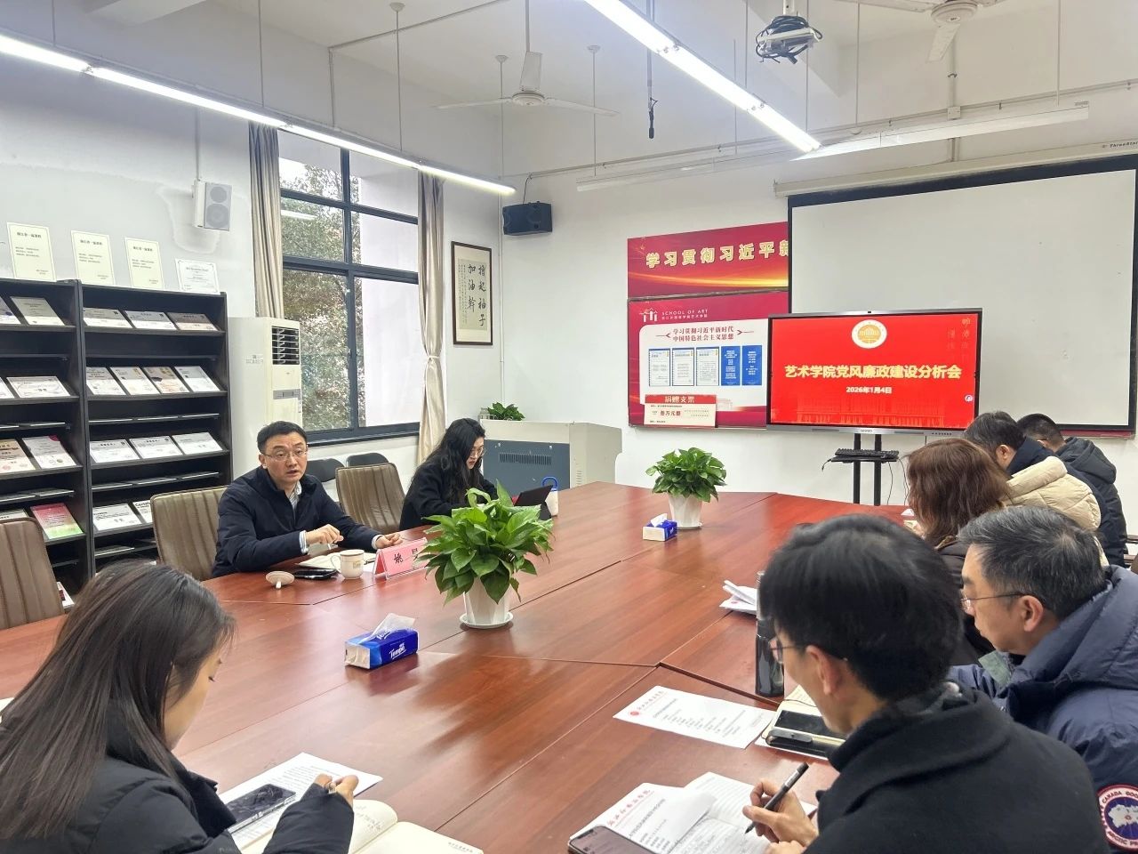 近期的工作成效,特别是在本科教育教学评估、70周年校庆、5A平安校园评定、新春音乐会等学校重要活动中做出了突出贡献,并结合期末工作实际,提出三点要求:第一,坚持围绕“立德树人”根本任务,进一步加强风险研判,将党风廉政建设与师德师风、人才引育、绩效分配等工作同研究,推动党风廉政建设落细落实。第二,牢固树立安全责任意识,既要坚持守好防火、防盗、防安全责任事故等硬底线,也要同步筑牢意识形态、心理健康、防宗教渗透等软防线,切实维护学院安全稳定。第三,有序推进学院领导班子换届工作,新老班子成员要保持密切沟通、衔接到位,要重点关注生活困难的师生群体,确保期末各项工作井然有序。