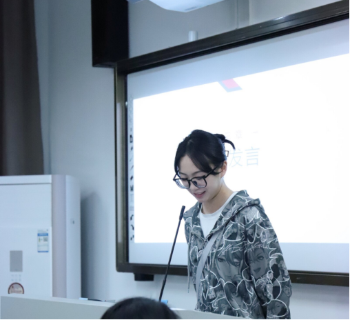 办公室成员董以诺代表23级团委新干事上台发言,表明了自己对团委生活的期待,将以热情、认真、负责的态度对待团委的每一项工作,为团委大家庭增添新活力。