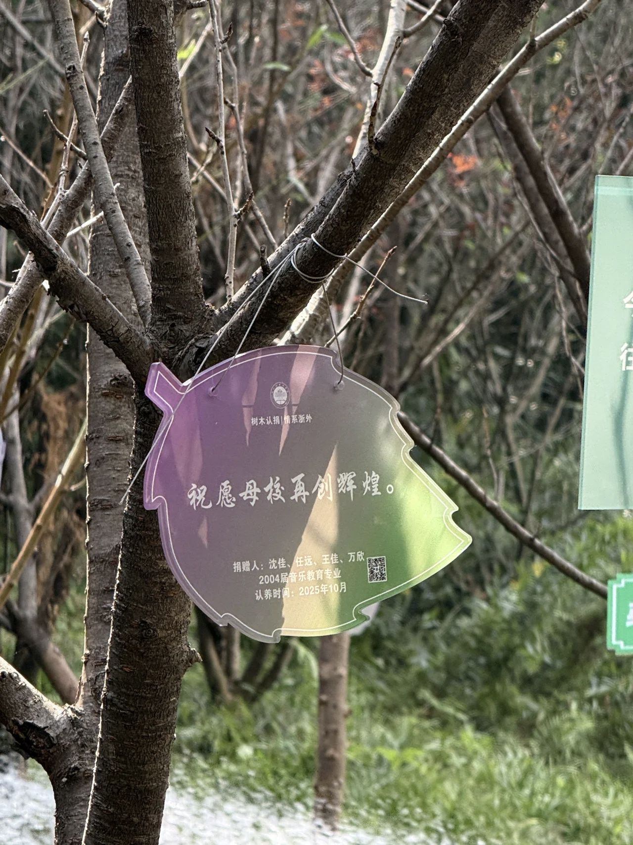 14棵树,不只是数字,更是14份跨越山海而来的牵挂,这些树,将名字与记忆一同扎根在母校的土地里,成为联结彼此、寄语未来最生动的绿色诗篇。