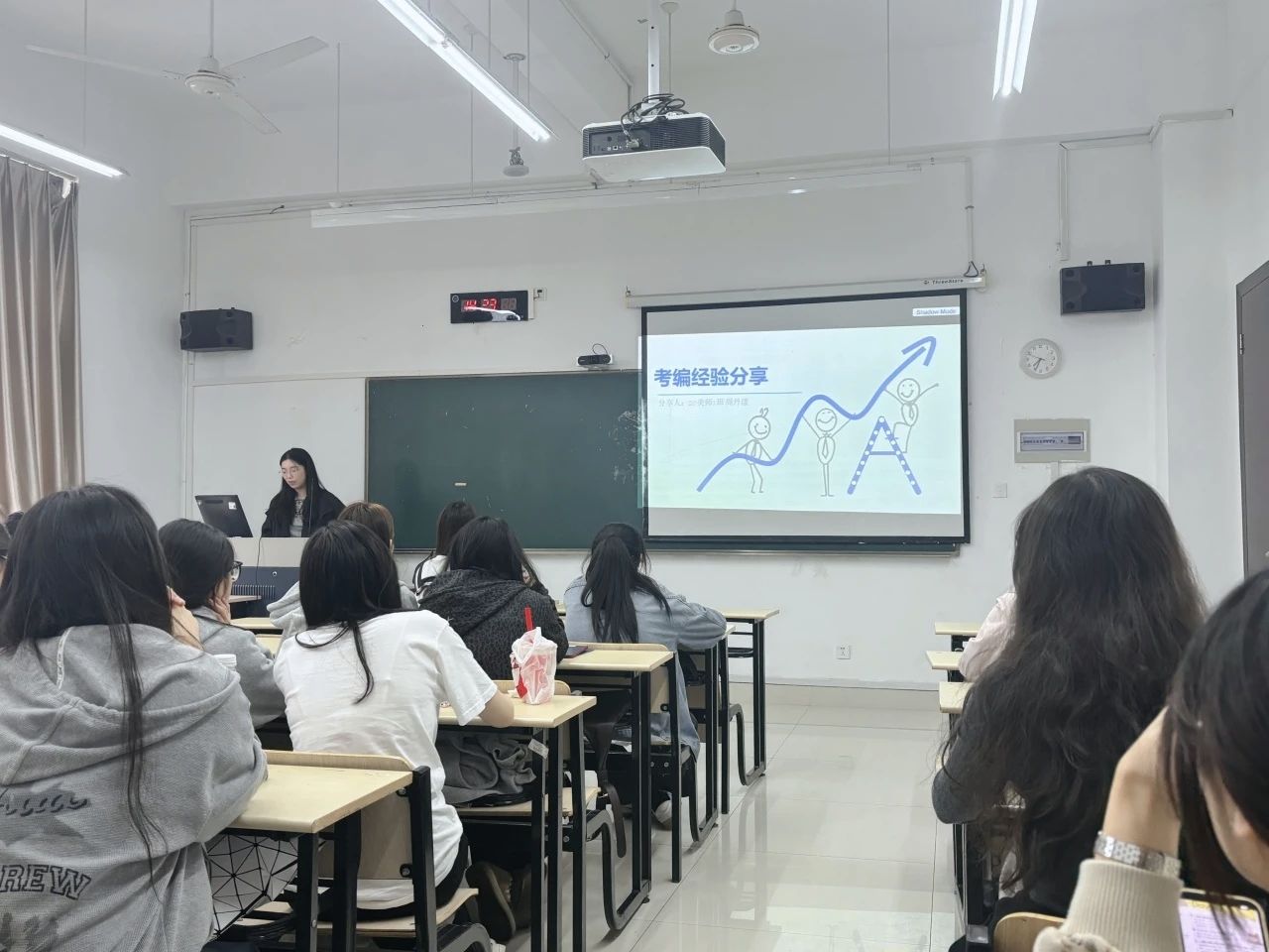 校友周丹漾提到考编,备考前需精准匹配不同学校的不同岗位条件,通过公众号、教育局,学校公告及小红书等获取信息,掌握信息差;备考时,打磨简历、分类排版作品集。实战时,需要针对不同地区考核形式准备,稳住心态把控状态。分享会为学弟学妹们规划好未来提供了海量经验。