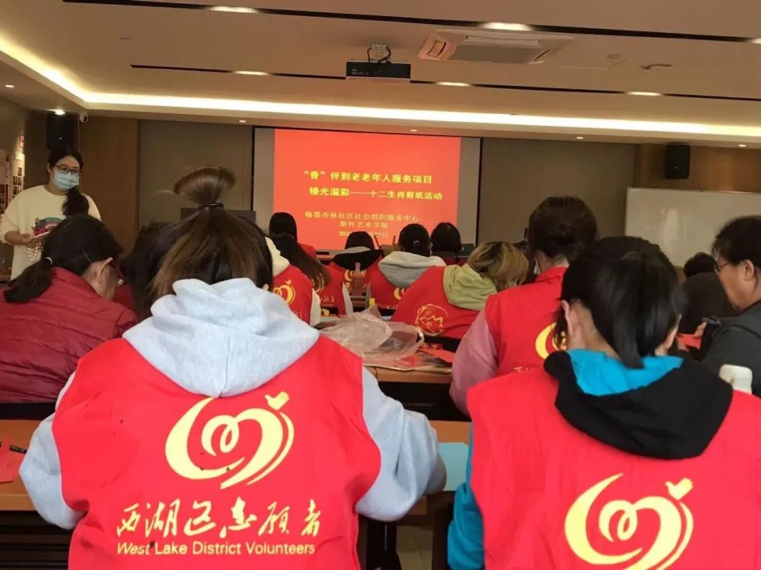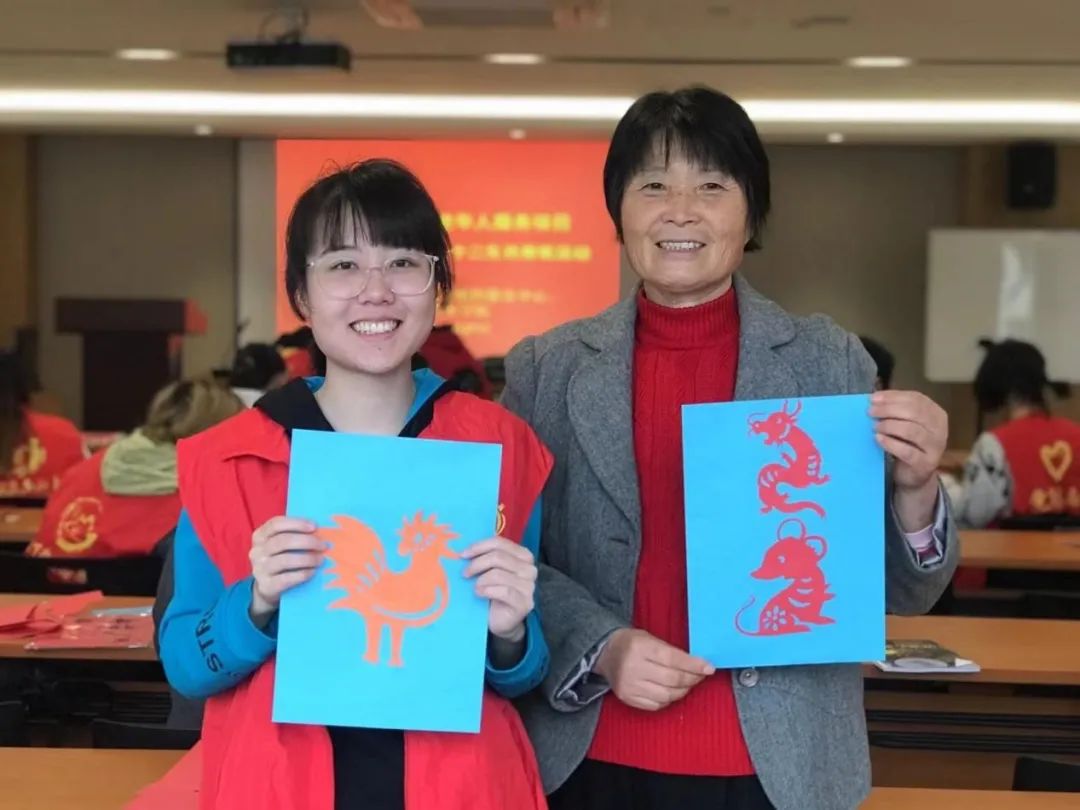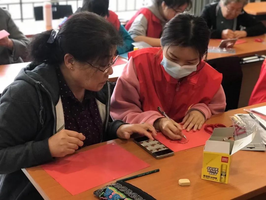 学生志愿者团队与“艺起老”志愿者项目的翰墨香林社区的老年朋友们共同举办了以“镂光溢彩——十二生肖”为主题的创意剪纸比赛活动。