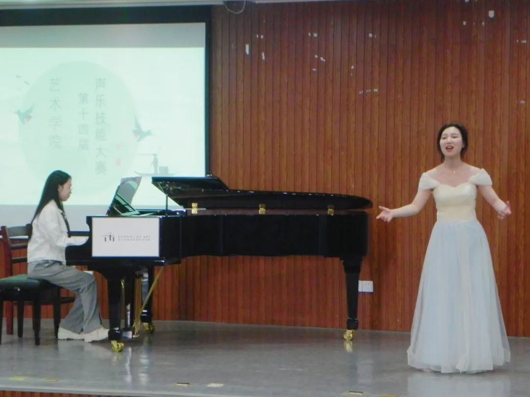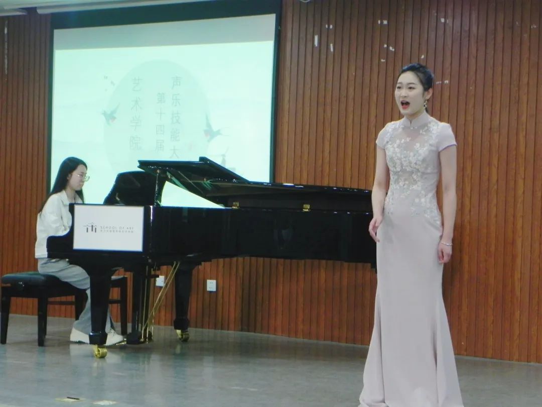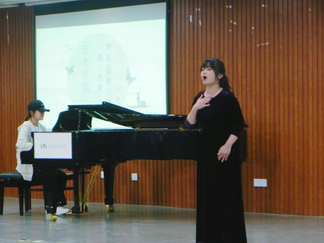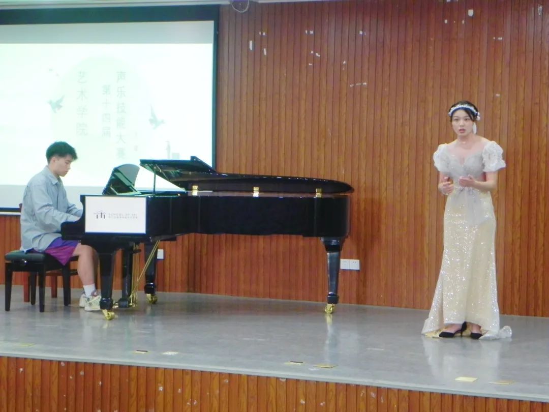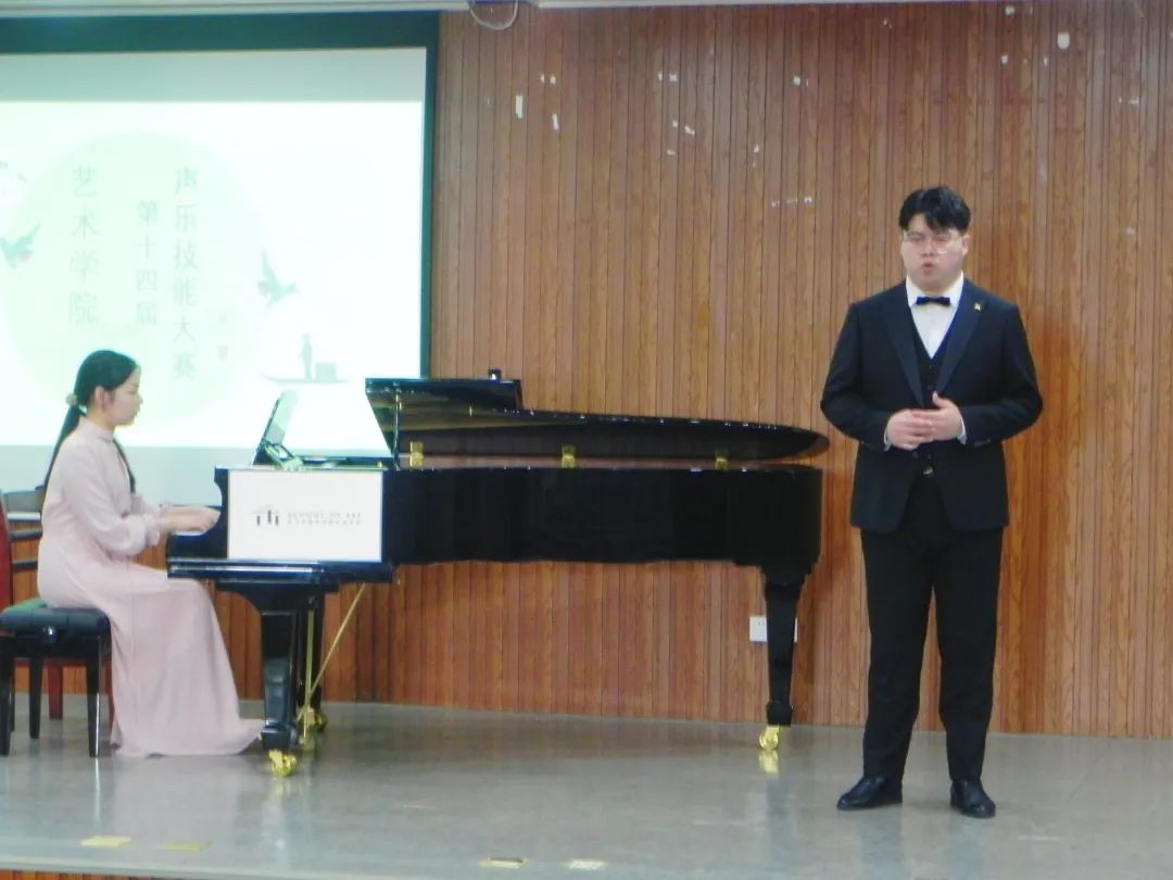 第十四届声乐技能大赛在博文堂二楼成功举办。本次比赛邀请到了音乐系冯晓玲、何飞舟、陈彦铮老师担任评委,比赛吸引了14名来自不同年级热爱声乐的参赛者。