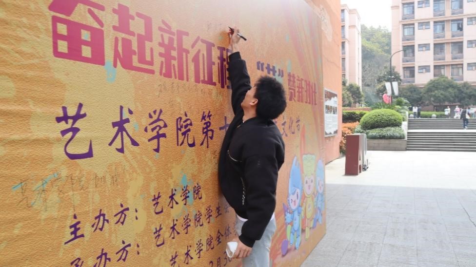 学生会在活动宣传板上写下对于活动与未来的寄语,为本次活动拉开了序幕,麦田影院