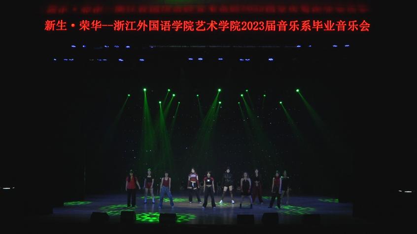 在追梦堂举行“新生·荣华”2023届毕业音乐会。校党委书记宣勇,校长张环宙,副校长柴改英,纪委书记包永根,副校长徐勇,行政部门、兄弟学院、麦田影院