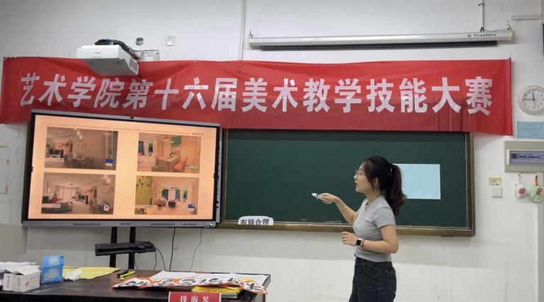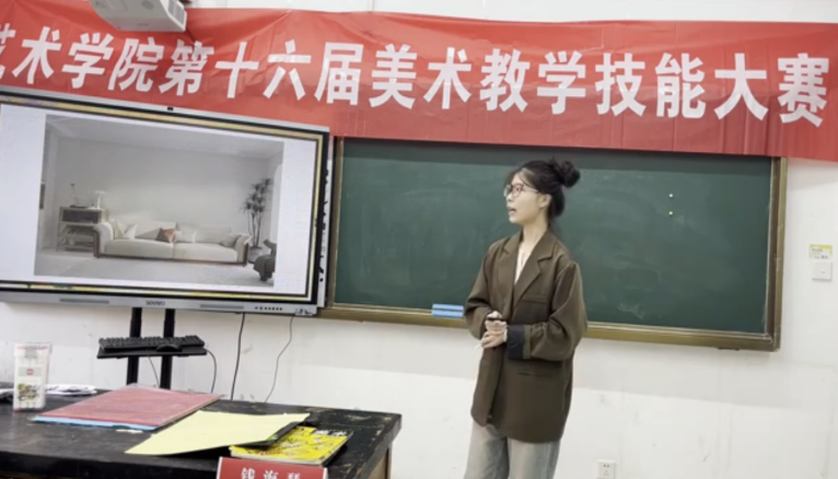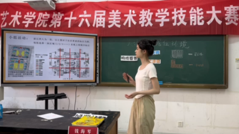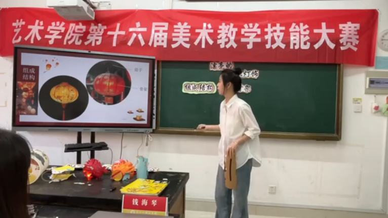 本次比赛形式为模拟课堂,由美术系教师钱海琴担任评委。在模拟课堂环节中,选手们通过事先准备充分的教案,详细生动地讲解,将课堂的一幕幕重现,使人仿佛置身轻松有趣的美术课之中。