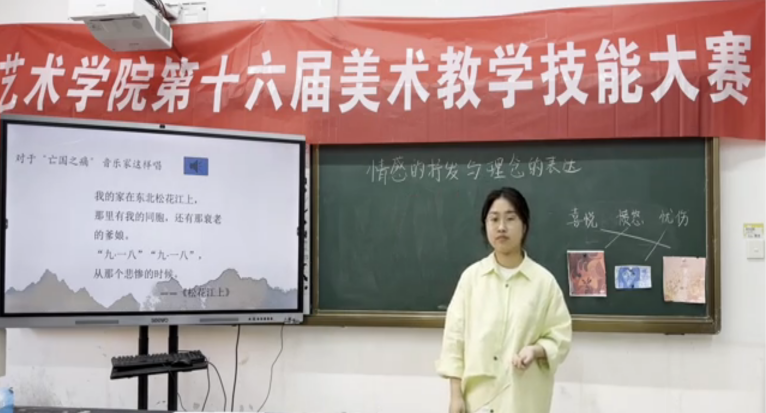 在模拟课堂过程中,选手们精神饱满,动作语言极具感染力。教学内容主次分明,结构合理,衔接自然紧凑,充分展现美术学(师范)同学们对教学的独到理解和扎实的专业功底。在比赛结束后,钱海琴老师针对每个选手的表现进行单独点评,给选手们提出了宝贵的意见!