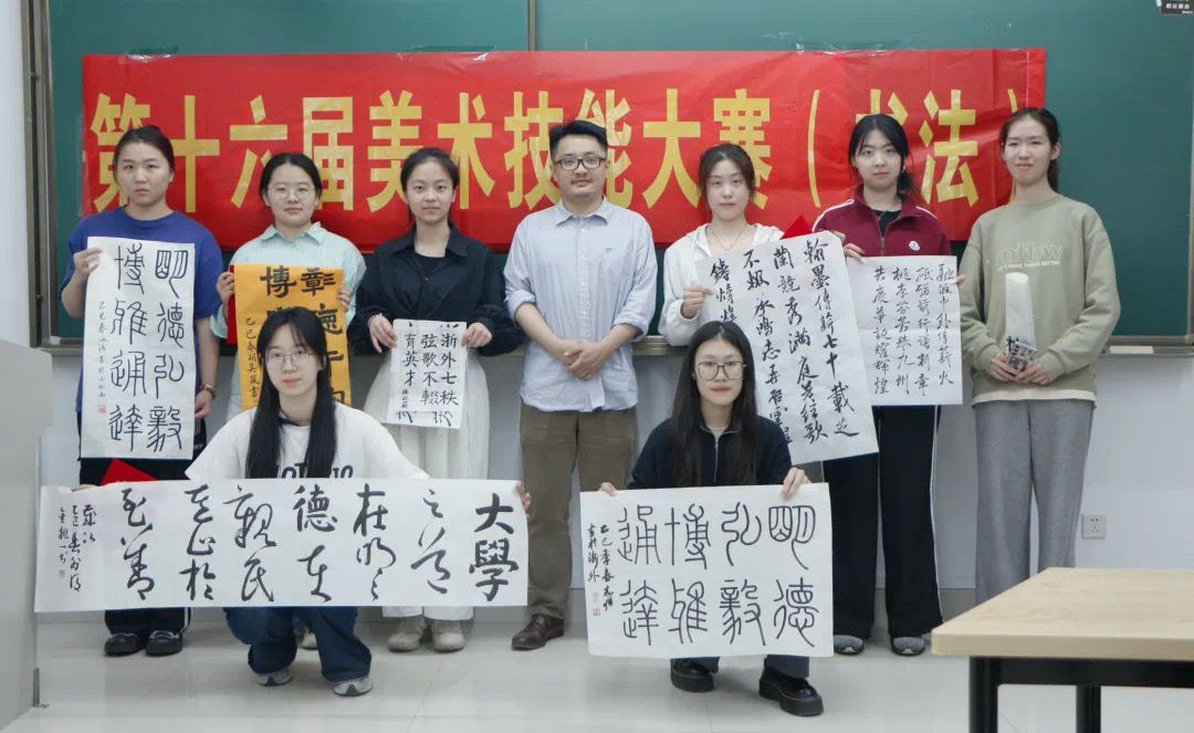 特此举办第十七届美术技能大赛(书法),本次大赛在艺术文化节开幕式后,于品c112举行。同学们以笔墨为弦,为母校献上深情礼赞