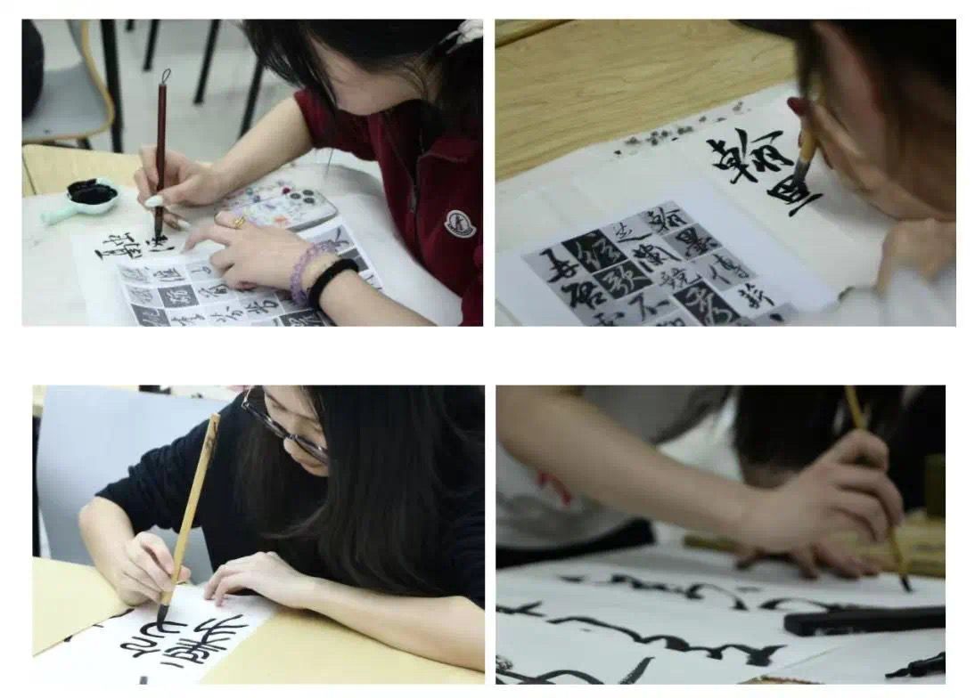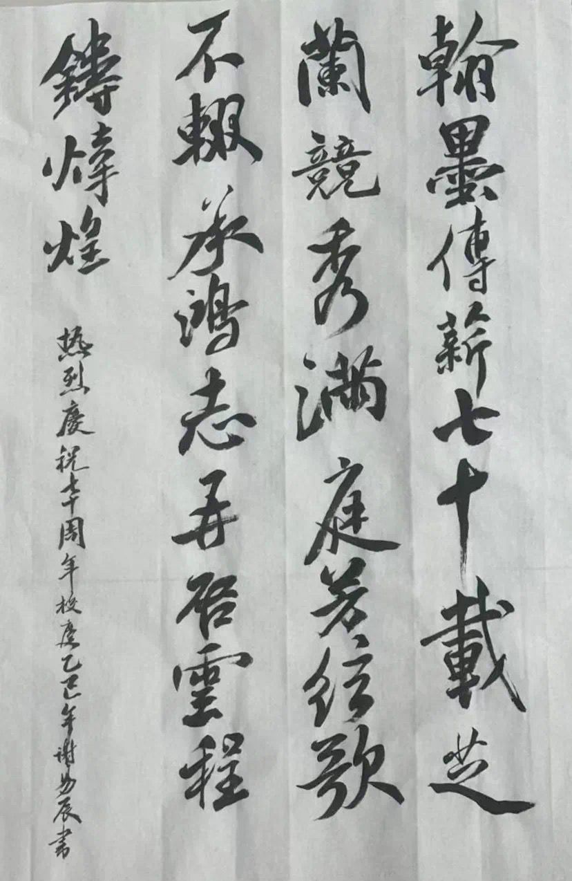 比赛现场,参赛者们全神贯注,沉浸在笔墨的世界里。毛笔在宣纸上游走,或轻盈飘逸,或刚劲有力,每一笔都倾注着对母校深深的祝福。同学们屏气凝神,精心布局谋篇,力求将自己最好的水平展现出来。