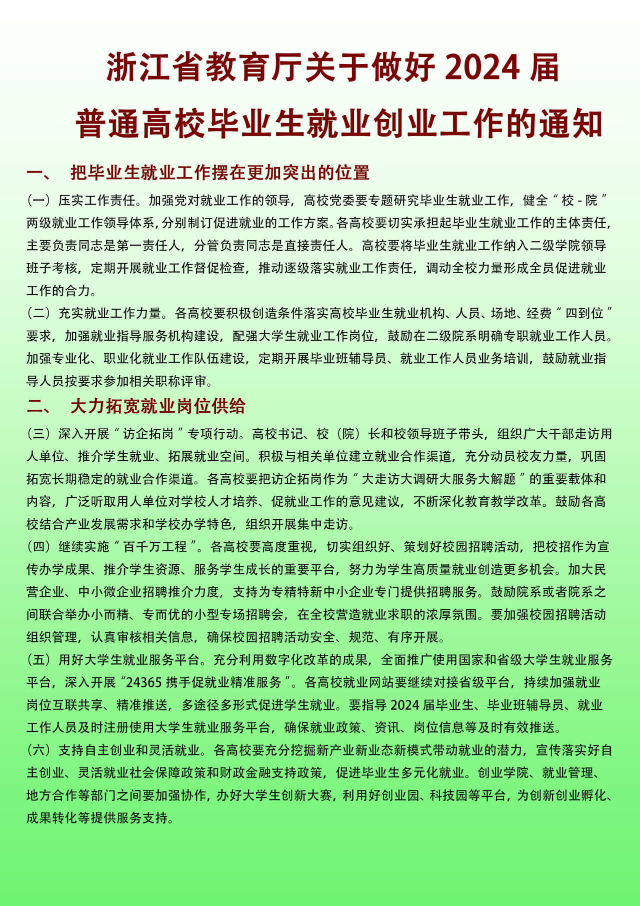 “兵马未动,粮草先行”,良好的资源保障是打胜仗的基础条件。为帮助2024届毕业生更充分、更高质量就业,学校加强校企合作,邀请各类企业来校招聘,开设就业指导课程,提供创业支持,为有意向创业的学生提供资金支持、法律咨询等服务,加强就业信息服务,不定时在学校官微、各年级班级群发布各类招聘信息,帮助学生及时了解就业市场动态,同时学校还会为学生提供心理辅导,缓解学生的心理压力。2024年,我们还会计划组织大规模企业校内招聘会,希望同学们一定要珍惜机会,积极参加。同时也请同学们密切关注身边可靠资源,如各省各市的微信招聘公众号、24365国家大学生就业服务平台、各省人力资源和社会保障厅网站、相关企业的官方网站等各大信息招聘平台,希望学生们能根据自身实际情况,精准筛选求职岗位,抓住春季招聘黄金期,充分把握就业机会。