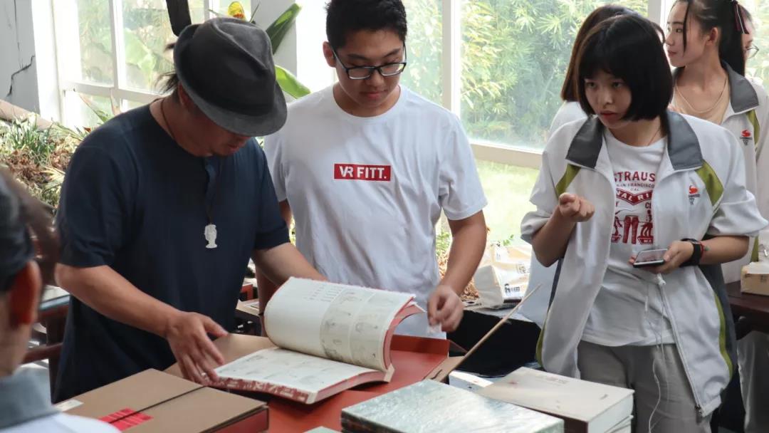 在德清三中运河文化展厅里放满了艺术书籍,在音乐人谢锡伟、张邑现场弹唱的民谣音乐氛围下,老师和同学们一起阅读交流。