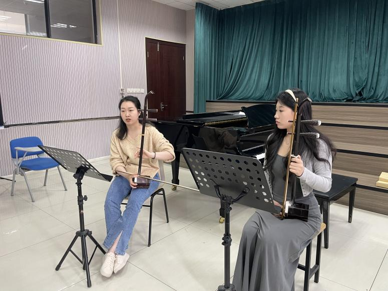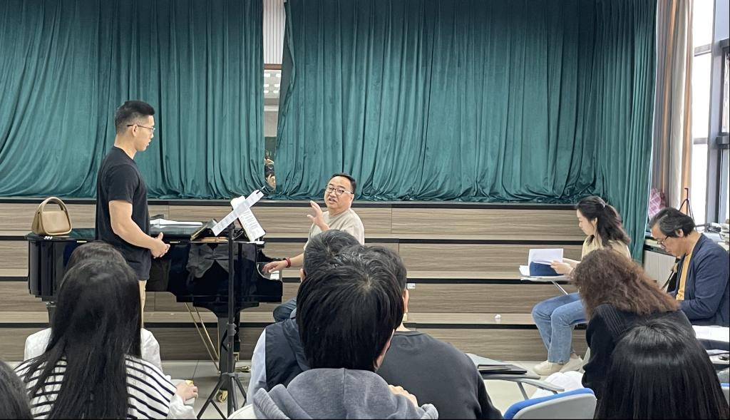 教学研讨会围绕“专业培养目标”“毕业要求”与“课程体系”合理性评估、课程合理性评价与达成度评价、毕业论文质量提升等展开研讨。优秀教师代表余小信、何飞舟分别就钢琴、声乐课进行公开展示,新进教师朱宏博进行了二胡演奏教学磨课。