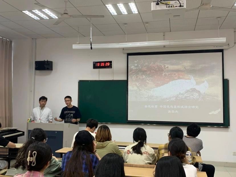 与美术系师生进行一系列学术讲座与交流活动。活动中美术系特邀中南民族大学吴英杰副教授展开关于“春华秋实——中国花鸟画形式语言研究(近代篇)”的学术讲座,近120位师生到场参加本次讲座。