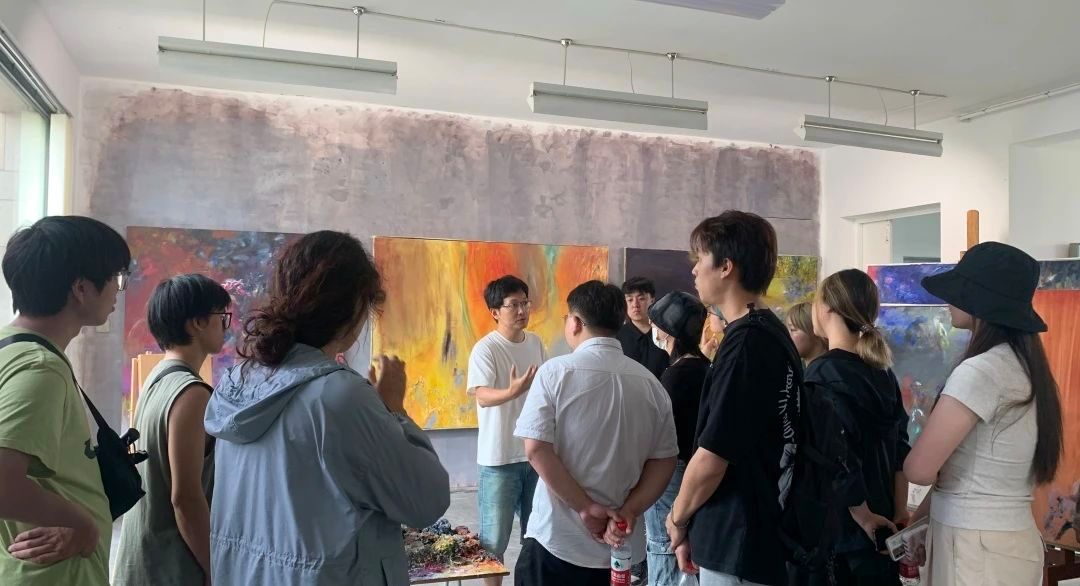下午中南民族大学师生前往黄河老师工作室参观交流。黄河老师在带领中南民族大学师生们参观了工作室后,向大家详细介绍了自己的创作历程、创作观念和创作技巧,同时回答了同学们提出的问题。