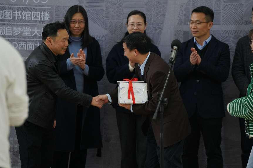 尼奥尼品牌创始人沈从仁向校图书馆捐赠《尼奥尼·素色与真——全国一线美术教师作品集》。