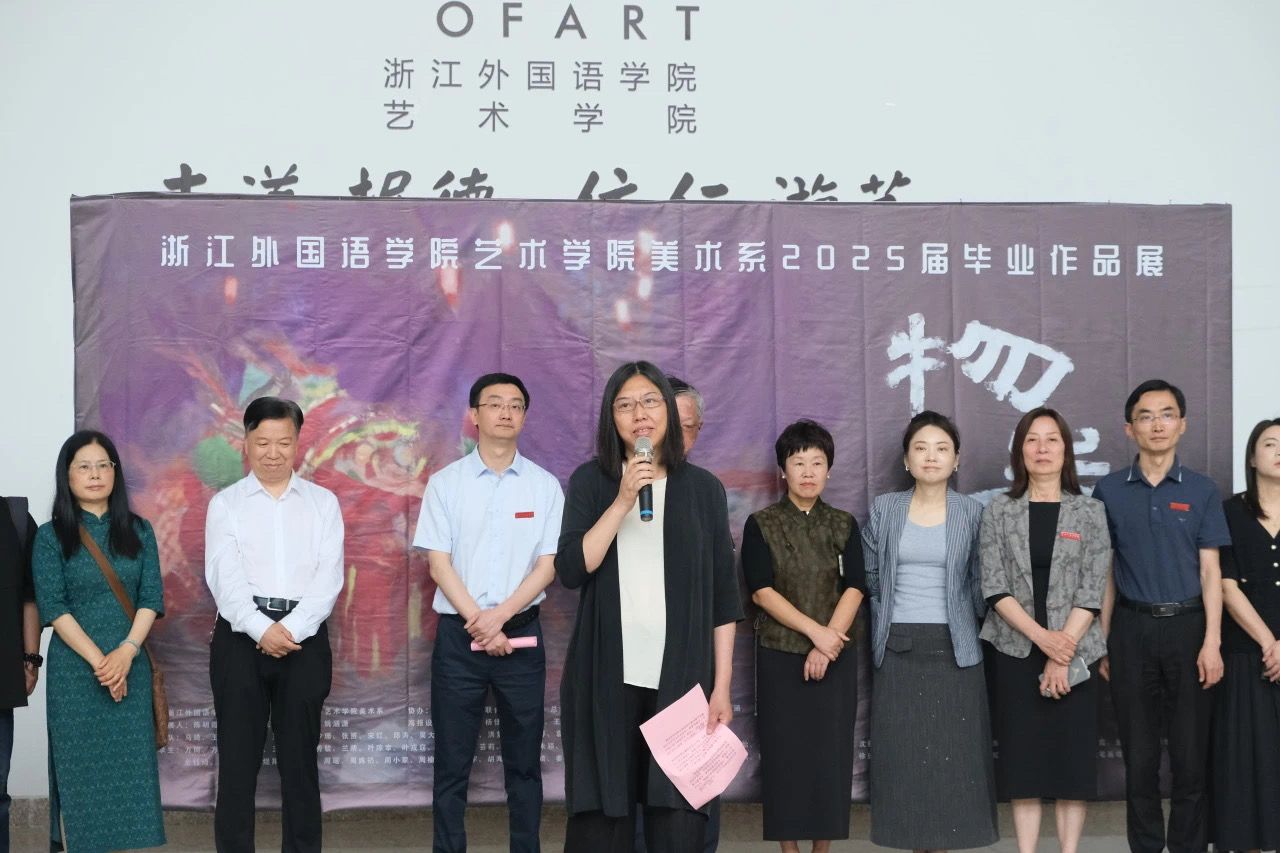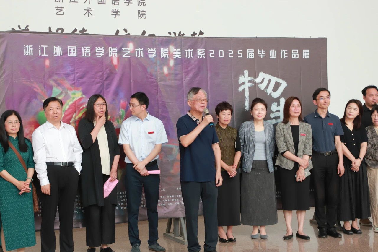 李敏院长谈到,2025届学子通过四年学习生活,历经就业、考编与熬夜创作的重重考验,今天终于迎来了满载成果的毕业画展开幕这一隆重的时刻。此次毕业展以“物·生”为名,寓意自然生机、祖国繁荣、事业欣欣向荣。师生共同付出,愿学子在未来实现个人生命价值。