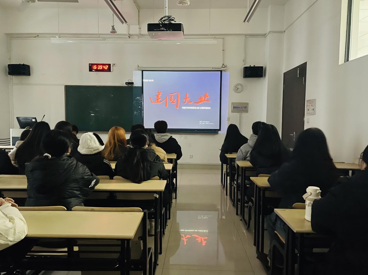 在新中国成立七十五周年之际,为了让同学们不忘初心,牢记使命,通过开国之初那一代人在百废待兴之际的艰苦创业,更好地理解青年习近平身上矢志不渝的理想信念,遂组织新生观看《建国大业》,在艺术作品中了解历史,感受新中国成立的辉煌伟业。